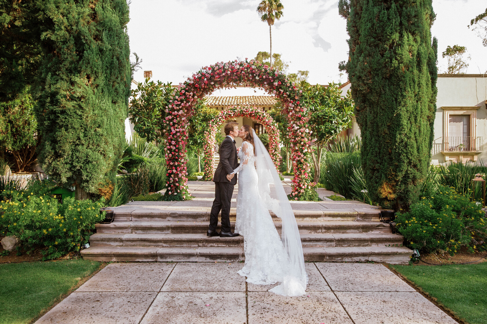 Once you got through the hacienda there were flower arches leading up to the pool. The aisle was covered in pink rose petals and a large arch for the ceremony. It was breathtaking!