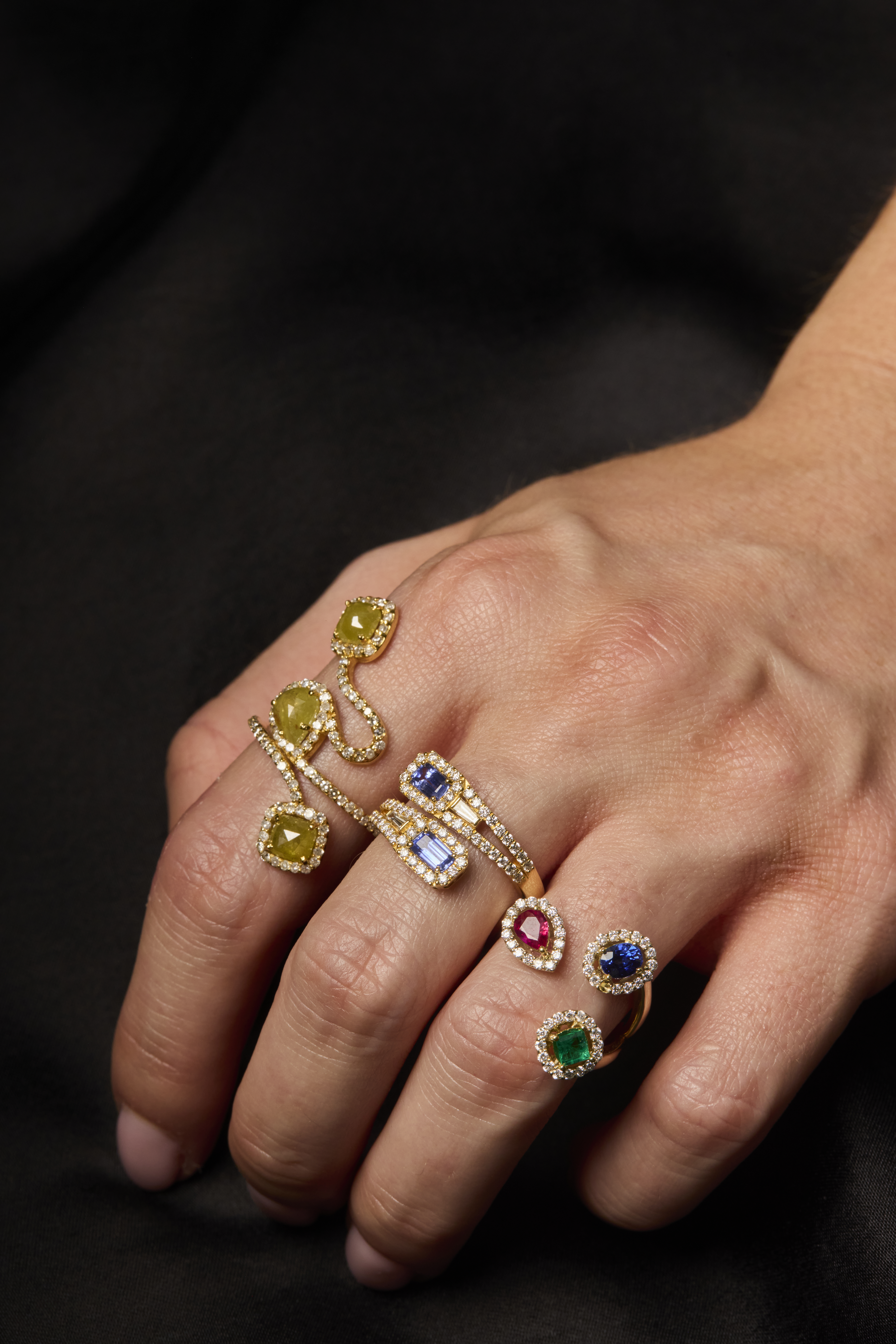 Zafiros, rubíes y esmeraldas se integran cada vez más en anillos de compromiso, no solo por su estética, sino por lo que representan. Especialmente los zafiros, que existen en una amplia gama de colores, permitiendo combinaciones inesperadas y profundamente únicas.