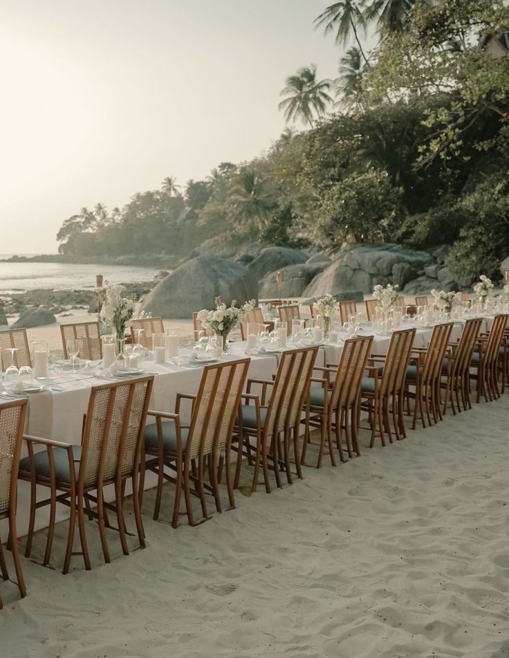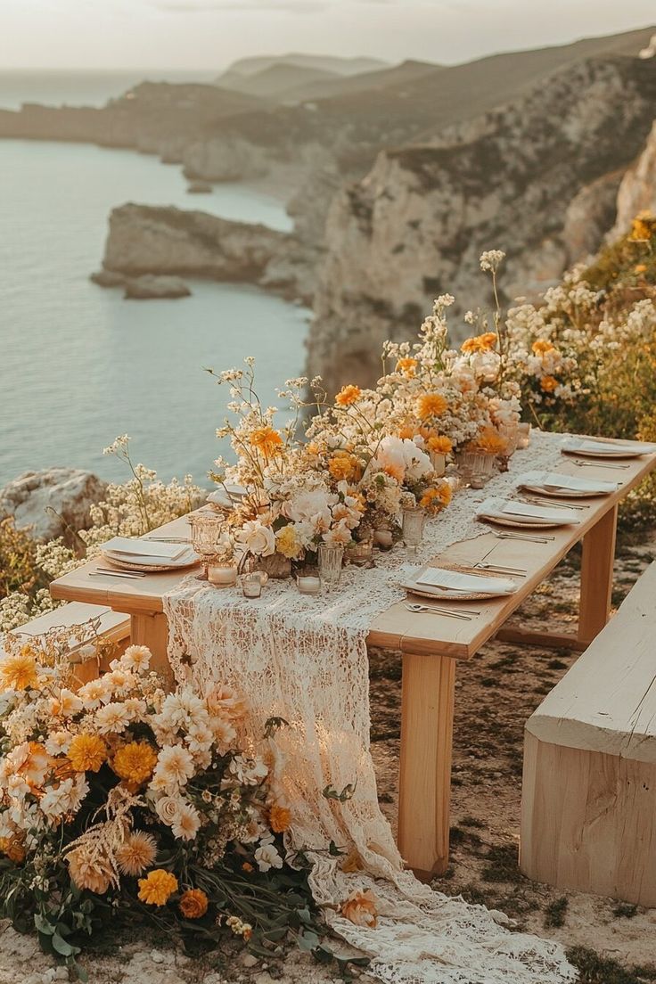 La playa: clásica, pero reinventada. Hoy, las bodas boho en la playa se tornan más limpias y místicas: arcos con telas crudas, cristales energéticos, flores en colores neutros y velas. El mar como altar, y el sonido de las olas como música.