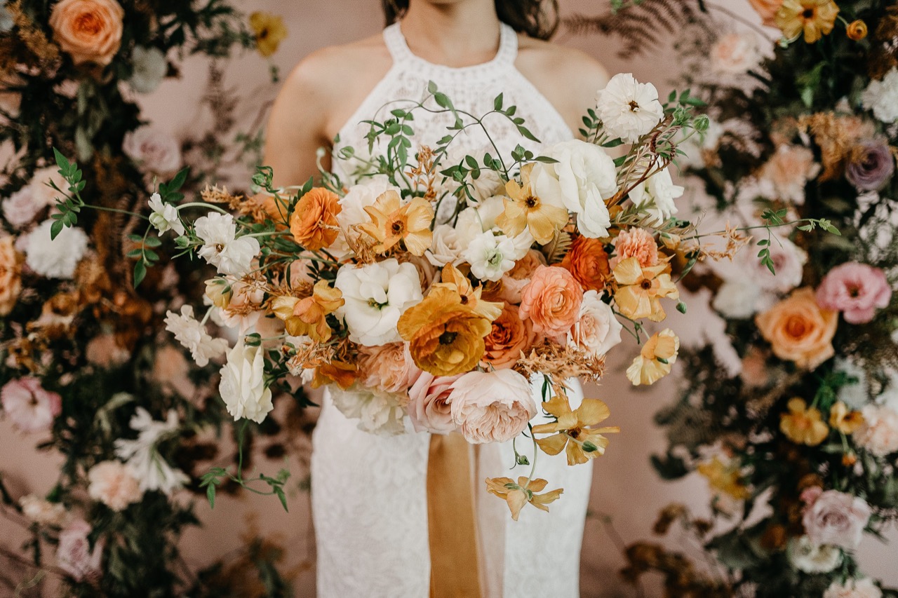 El objetivo de encontrar inspiración en las distintas apps, es que te des ideas para llegar al punto clave de trabajar con tu florista para reunir todas tus imágenes, recortes, mood boards y listas para crear un bouquet que te represente. El proceso con tu florista debe ser íntimo y personal, ya que él o ella te guiará en la selección de flores y colores de acuerdo a las temporadas y estaciones del año, qué forma va mejor contigo y cómo incluir elementos de tu personalidad para que sea único y especial. Si te gusta el estilo clásico, elegante y romántico puedes optar por flores claras y delicadas, pero si tu personalidad es más bohemia opta por flores con forma únicas, como elementos secos y ramas, también hay personalidades fuertes y divertidas que pueden optar por un diseño más alocado y con colores vibrantes.