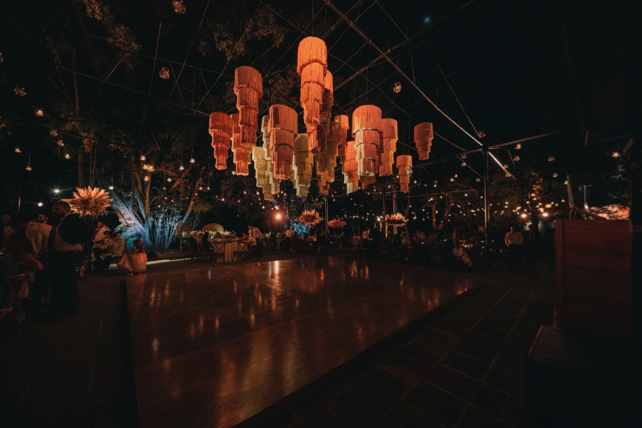 Al diseñar la iluminación, Ximena siempre considera: el horario de la boda, las cosas que quieras resaltar de la decoración, y muy importante, la iluminación especial para los bailes principales.