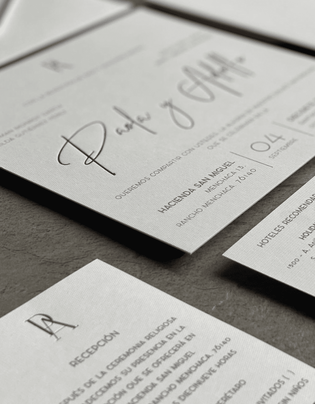 Sus impresiones resaltan por las texturas que logran crear y por su gran calidad. Confía en que ellos podrán materializar tus ideas de una manera muy creativa, pues de principio a fin estarán en comunicación contigo para crear la invitación que siempre soñaste. Con ellos, el cielo es el límite.