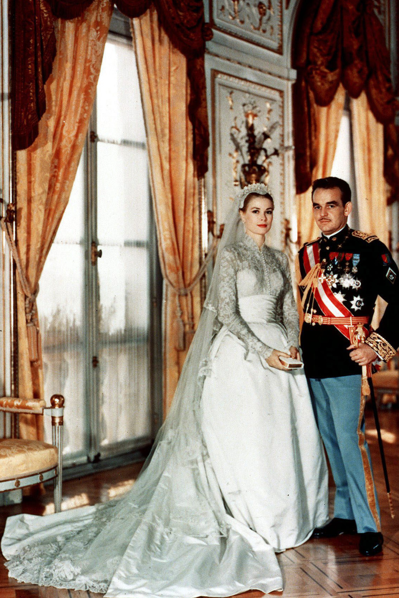 Se unieron en matrimonio en 1956. La actriz además de convertirse en miembro de la realeza, hizo historia en la moda nupcial. Usó un vestido de encaje diseñado por Helen Rose, ganando un premio a uno de los looks más memorables de todos los tiempos.