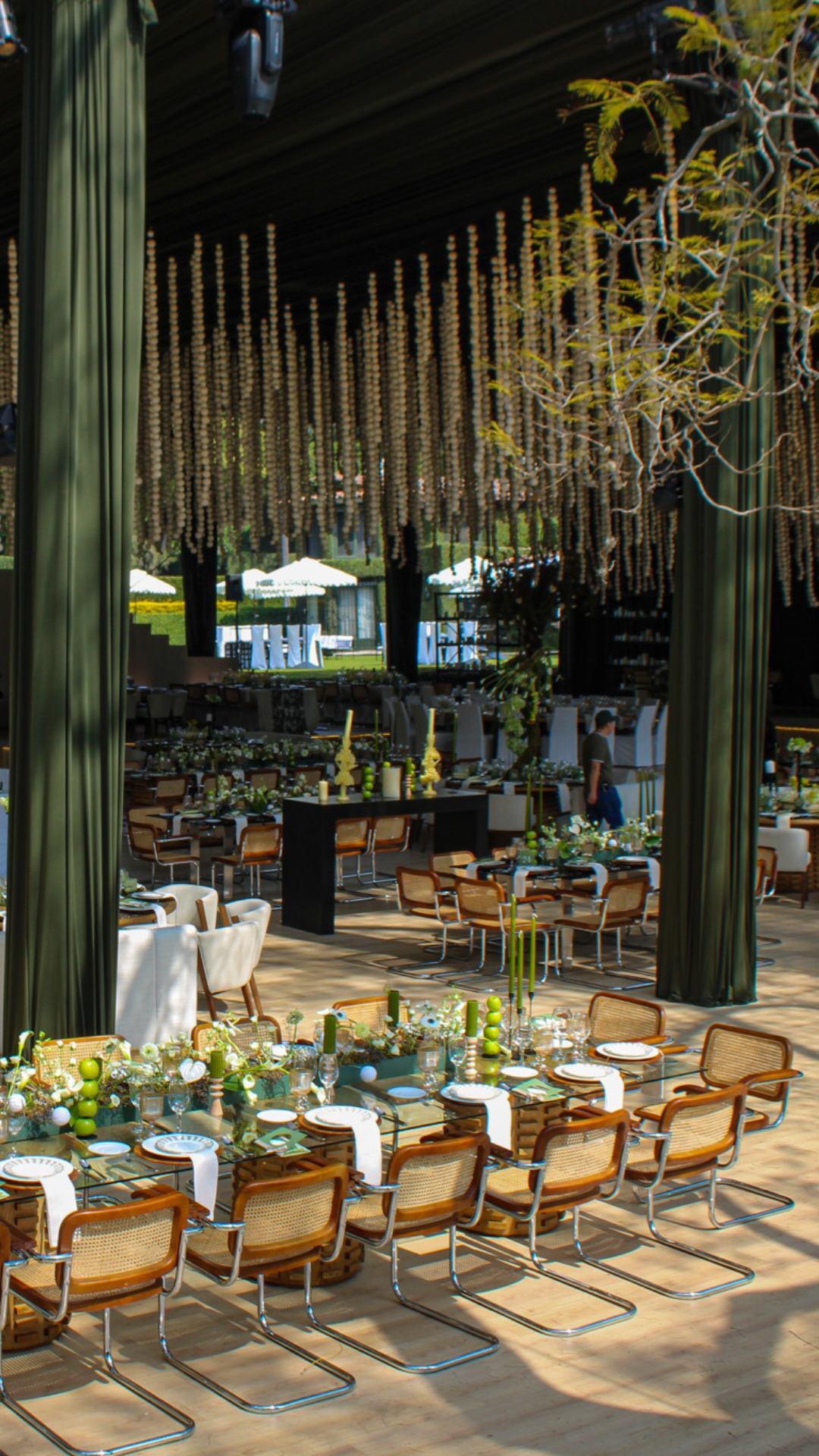 En este enfoque contemporáneo del diseño de bodas, cada elemento; desde la distribución del espacio hasta la iluminación y las flores; trabaja en conjunto para construir una atmósfera envolvente donde la celebración fluye con la misma naturalidad que las formas del montaje.