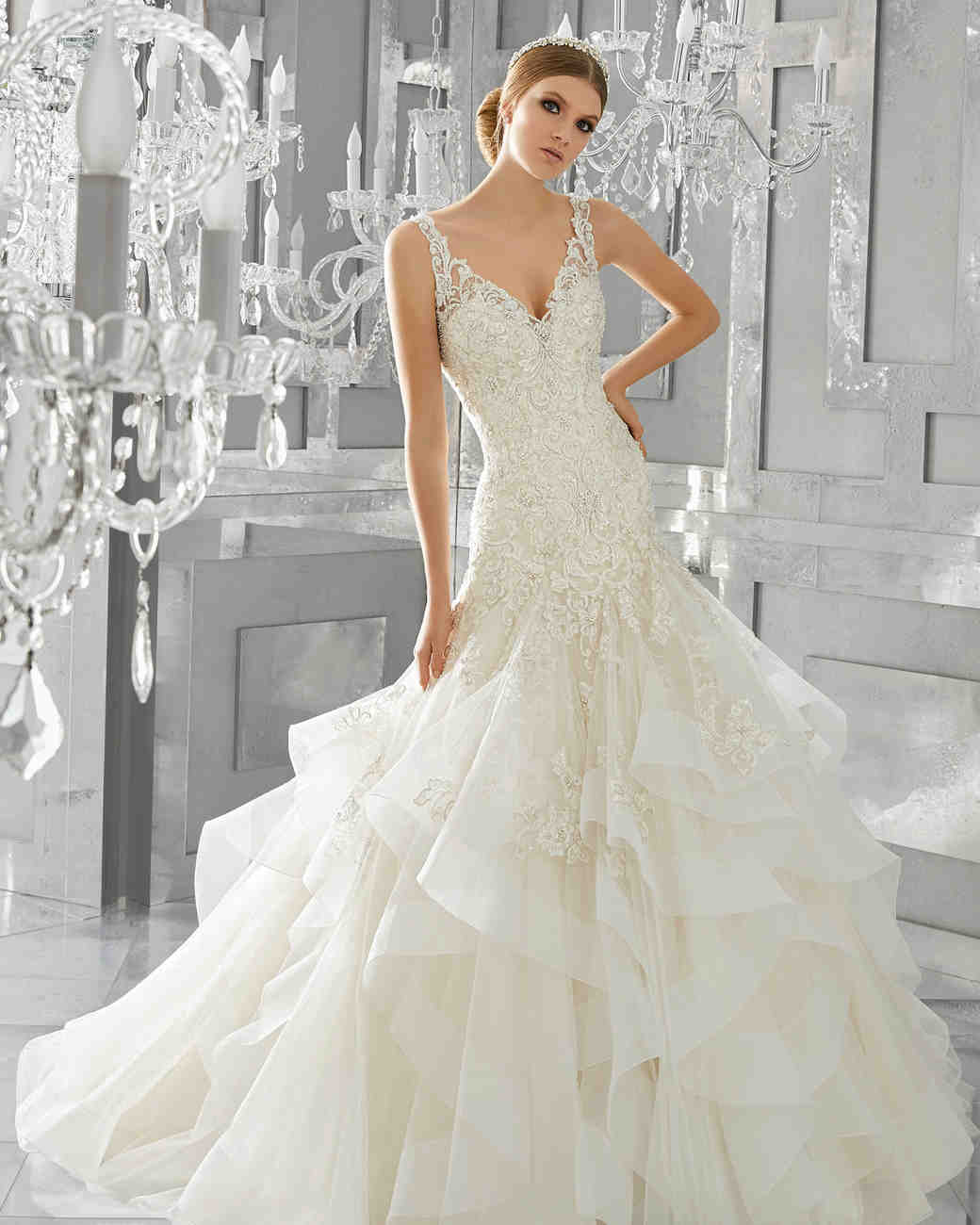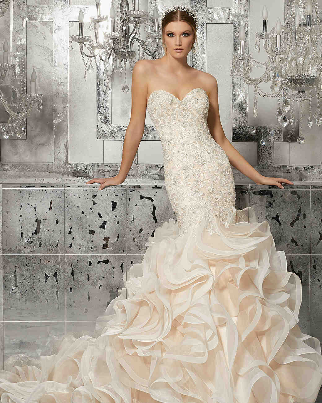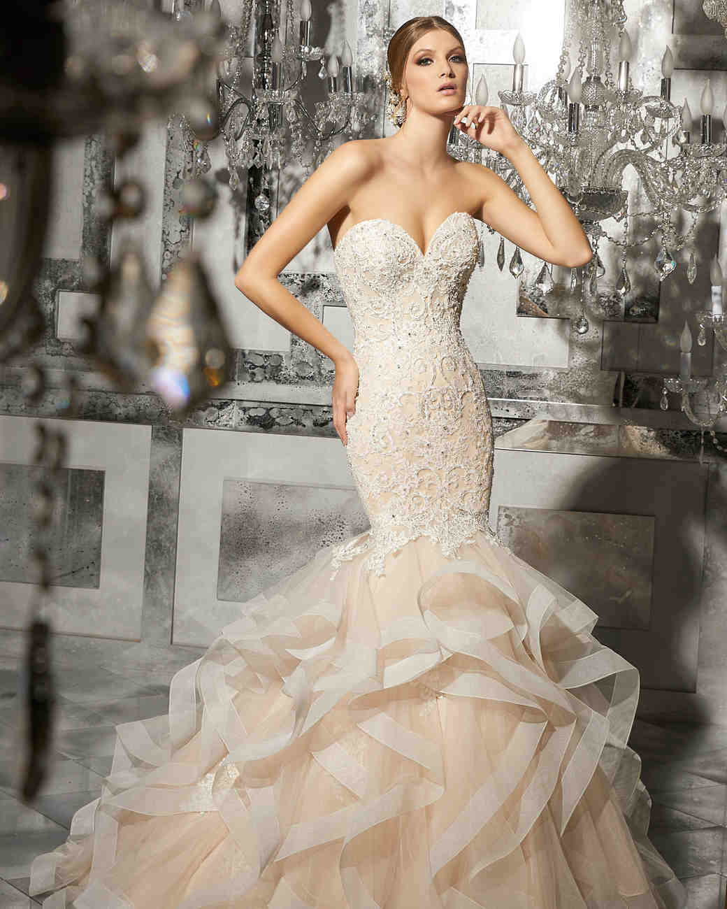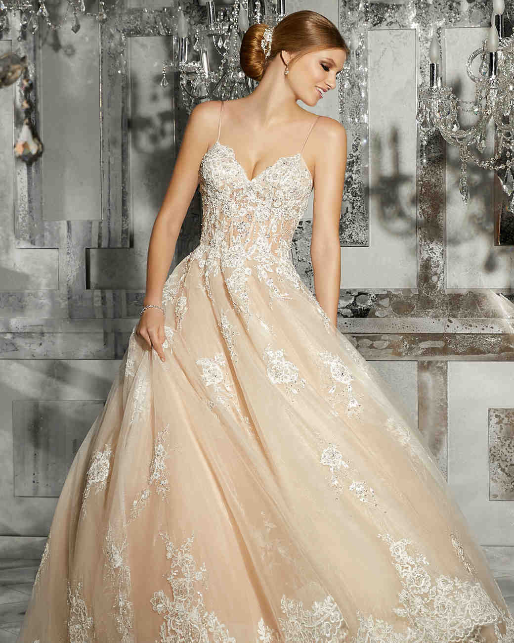 Nos encantan los diseños y cómo utiliza el rosa en cada uno de los vestidos, sin duda le da un toque de originalidad y rompe con el estereotipo del vestido de novia blanco.