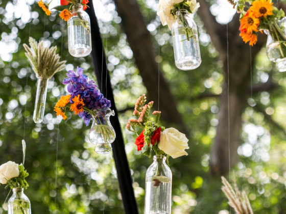 Los elementos de la ceremonia plasmaron el estilo campirano, con canastos llenos de nube, toques de lavanda y pampa grass, acompañado de un gran escenario entre árboles a pie del cerro del “chal-chi”.