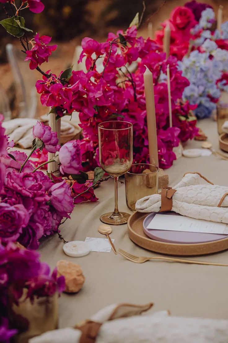 Hay una nueva revolución sobre la mesa, literalmente. En un mundo donde las parejas buscan romper moldes, los manteles se han convertido en el statement piece de la decoración. El blanco fue elegante, clásico, limpio, seguro… pero ya lo hemos visto mil veces. Hoy, las bodas con más estilo están vestidas de color: tonos vibrantes, atrevidos, inesperados. Porque el lujo moderno no está en lo predecible, sino en lo auténtico. En una mesa que habla de personalidad, de arte, de intención.