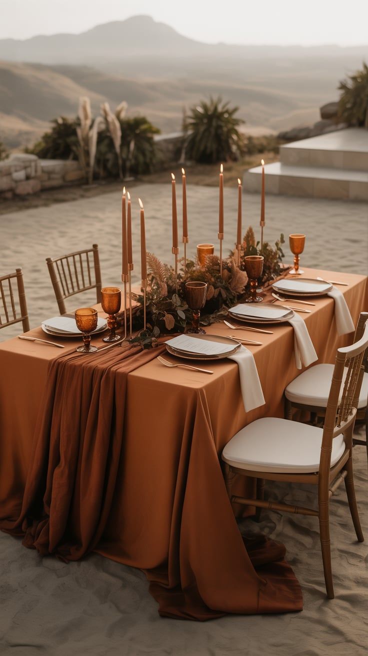 Una fusión elegante que grita sofisticación moderna. Ideal para una boda al atardecer.