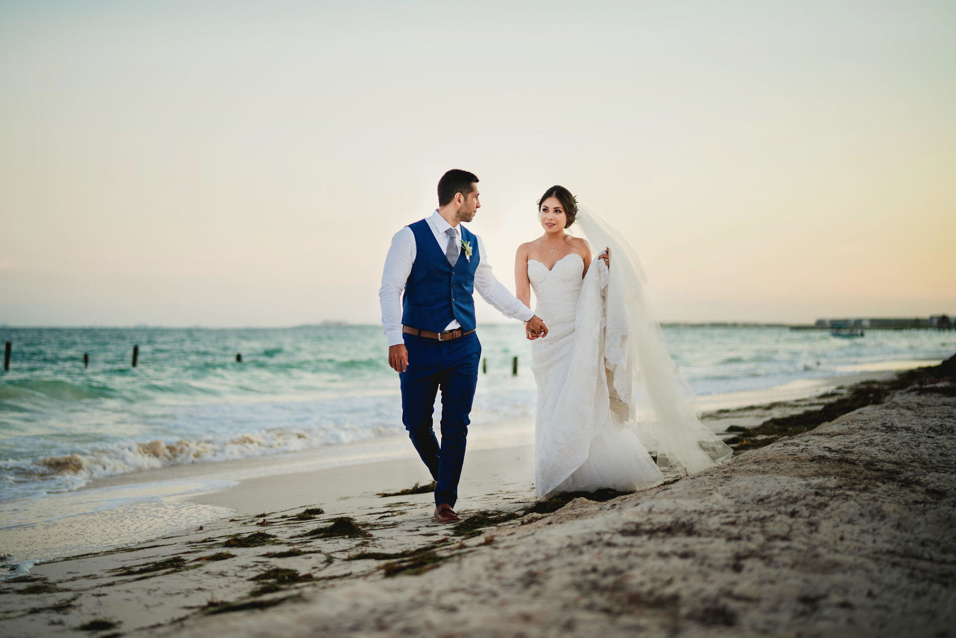 El gran día llegó y todos nuestros seres queridos estaban en Cancún, todos muy guapos y arreglados para disfrutar de una misa en la Capilla Santa Rita, nos encantó que estuviera sobre la laguna y tuviera una vista excepcional. Después de la misa nos trasladamos al venue, el cual se encuentra en Isla blanca, justo frente a Isla mujeres, un lugar virgen y rústico a la orilla de la playa, un espacio ideal para armar una boda íntima.