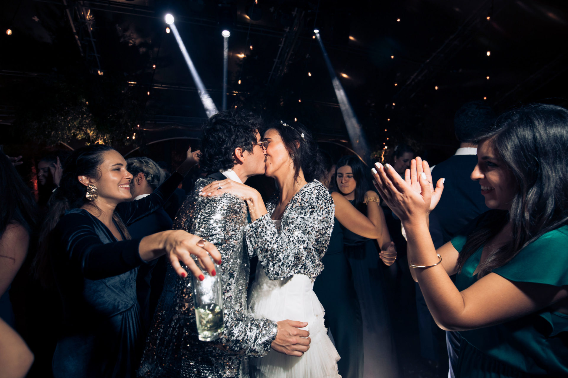Los novios siendo apasionados por los festivales, no pudieron dejar de lado el entusiasmo de la música que tanto los une. Bailes, drinks y muchas risas, lograron poner una bola disco al centro de la pista, entre luces de colores, estrobos creando un ambiente único y especial.