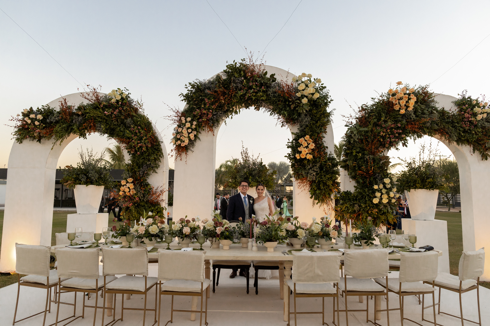 Con 230 invitados como testigos, Valeria y Mauricio dijeron “sí, acepto” en una ceremonia que fusionó lo mejor de dos mundos: la inspiración de la Toscana italiana y el espíritu festivo de México. Desde el primer momento, la atención al detalle fue evidente: tonos verdes, naranjas y beige llenaron el espacio, creando un ambiente fresco y elegante. La mesa principal, decorada con arcos cubiertos de follaje y flores en tonos tierra, fue la joya indiscutible del diseño, capturando perfectamente esa mezcla de lujo y naturalidad.